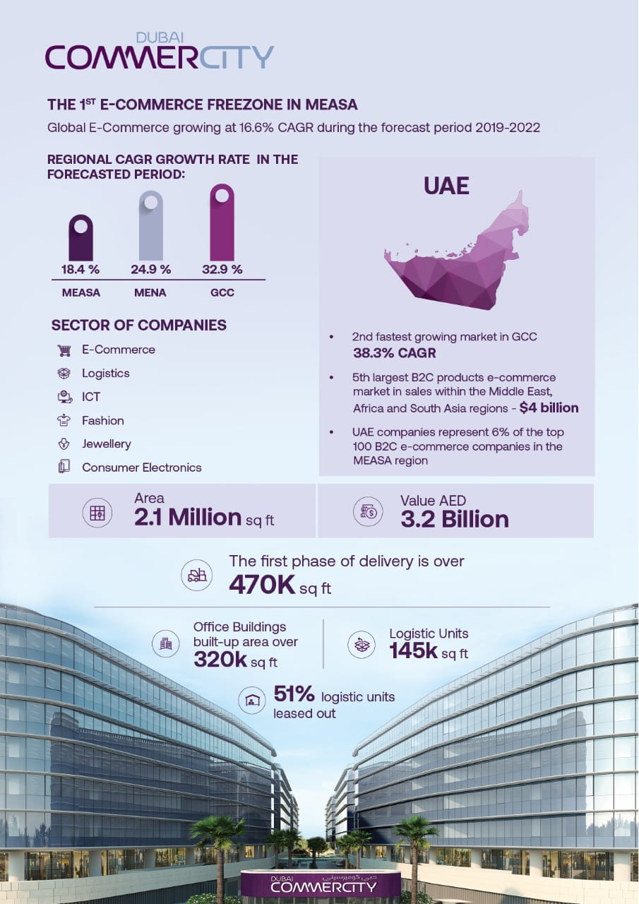 Dubai CommerCity (DCC), the first dedicated e-commerce free zone in the Middle East, North Africa and South Asia (MENASA) regions, has announced the launch of 470,000 sq-ft of new facilities as part of its first stage in line with its planned schedule.